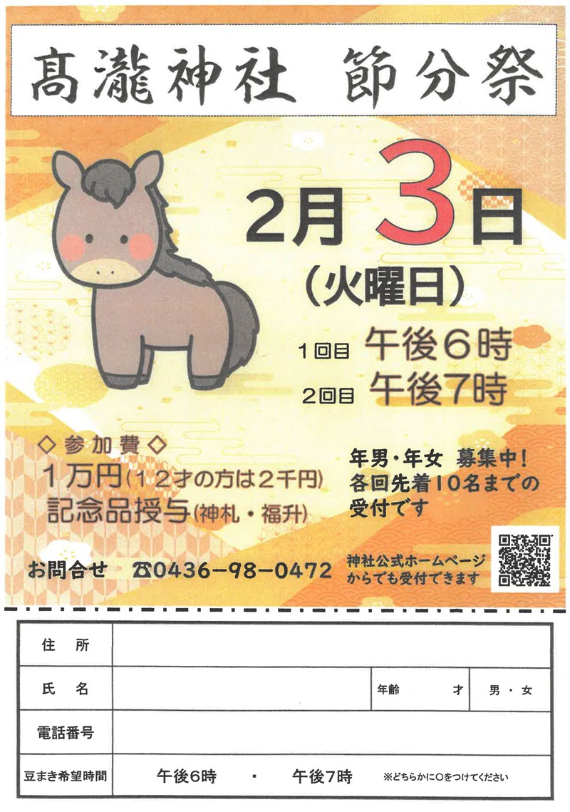 また、節分祭の年男・年女を募集しております(各回先着10名まで)。